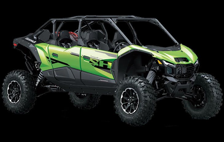 The new Teryx4 H2 high-performance side x side is designed for dune and desert domination. Its 250 horsepower 999 cc in-line four-cylinder supercharged engine is harnessed by a continuously variable transmission (CVT) and a highly rigid frame complemented by long-travel suspension that help balance the engine’s massive power for maximum control. Predictable handling and confident stopping power add to the well-balanced package delivering maximum fun that can be shared with the whole family.